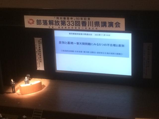 11月16日(月)、アルファあなぶきホールで、部落解放第33回香川県講演会が開かれました。