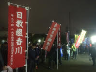 3月9日(水) 2016春季生活闘争勝利3.9香川県総決起集会 高松市中央公園において、午後6時30分より春季生活闘争勝利をめざして、連合香川をはじめ平和労組会議、連合香川東地協、高松地区労の労働4団体が主催する2000人規模の集会が開催されました。日教組香川からも嶋村委員長を先頭に組合員が参加しました。 残念ながら雨のため、デモ行進は中止となりました。