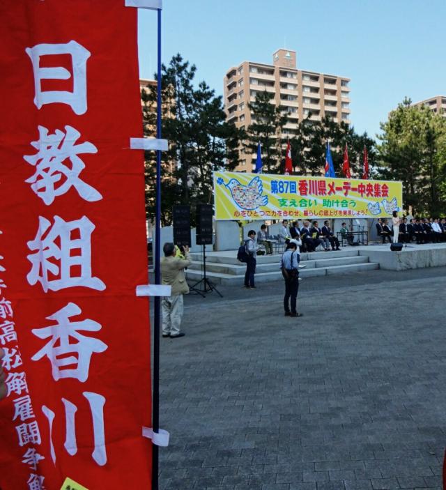 5月1日(日)第87回香川県メーデー中央集会 5月1日(日)、9時半から、サンポート高松多目的広場で、第87回香川県メーデー中央集会が開催され、日教組香川からも組合員が参加しました。 今年のメインスローガンは「支え合い 助け合う -心をひとつに力を合わせ、暮らしの底上げを実現しよう!-」です。最後に「働くことを軸とする安心社会をつくろう!」とメーデー宣言がありました。