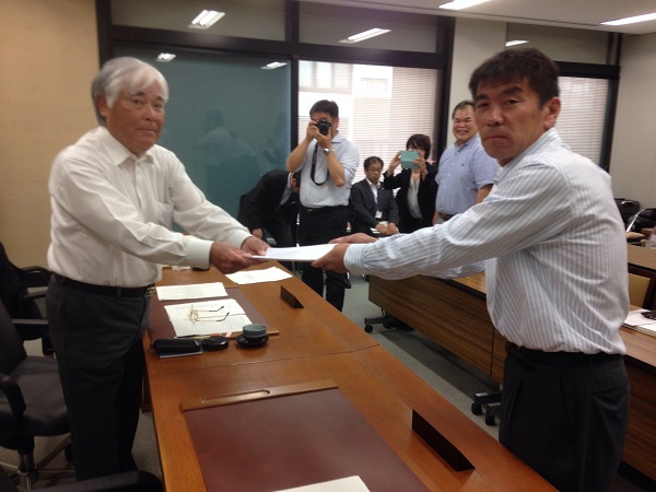5月8日(月)五者共闘人事委員会交渉 日教組香川は四者団体(自治労香川県本部、県職連合、高教組、香教組)とともに、午後4時より香川県人事委員会交渉を行いました。今回は日教組香川が幹事組合であり、まず県人事委員会東条委員長と日教組香川嶋村委員長が要求書を手交しました。交渉の中で、嶋村委員長は、超勤・多忙化解消に向けた発言をしました。7月には日教組香川独自の県人事委員会交渉を行います。