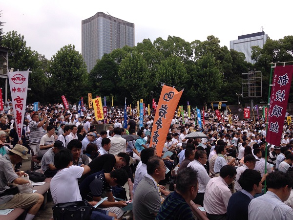 7月25日(火)公務員連絡会2017人勧期中央行動 日教組、自治労などが加盟する公務員連絡会は、7月25日午後1時30分より日比谷大音楽堂に全国から約3,000人が集結し、大変な猛暑の中、人勧期要求実現に向けた中央行動を行いました。日教組からは約850人の組合員が集まり、日教組香川からは2人が参加しました。