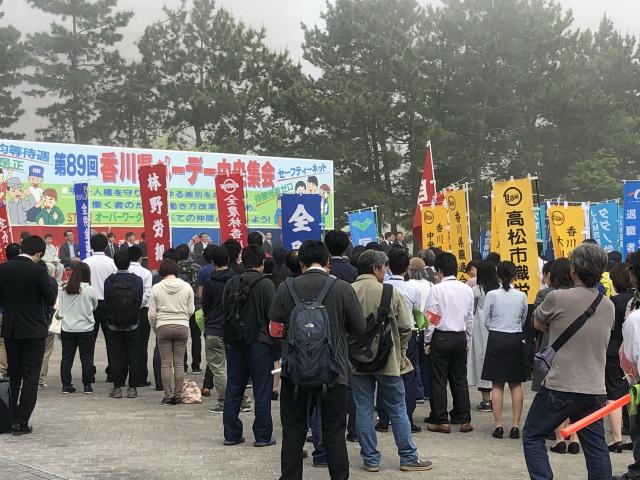 5月1日(火)第89回香川県メーデー 第89回香川県メーデーは以下の各地域で多くの労働者が集まり、開催されました。 ・中央集会(サンポート高松多目的広場)9:00〜11:00 ・中讃東地区集会(瀬戸大橋記念公園マリンドーム)9:30〜11:30 ・中讃西地区集会(丸亀市民ひろば)9:30〜11:30 ・西讃地区集会(三豊市豊中町市民交流センター)9:30〜11:30
