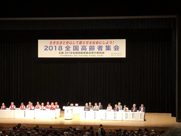 9月12日(水)2018全国高齢者集会 日本退職者連合・連合・中央労福協・労金協会・全労済の5団体の実行委員会による全国高齢者集会は、東京・文京シビックホールにおいて、午後1時より開催されました。全体集会の後、水道橋駅周辺までデモ行進を行いました。