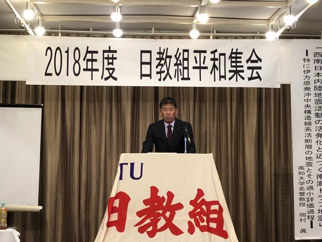 日教組は、21世紀を「平和・共生の世紀」と位置づけ、憲法の理念を実現し、「教え子を再び戦場に送るな」のスローガンのもと平和運動・平和教育の基軸となる運動にとりくみをすすめるため、2018年度平和集会を香川で開催しました。