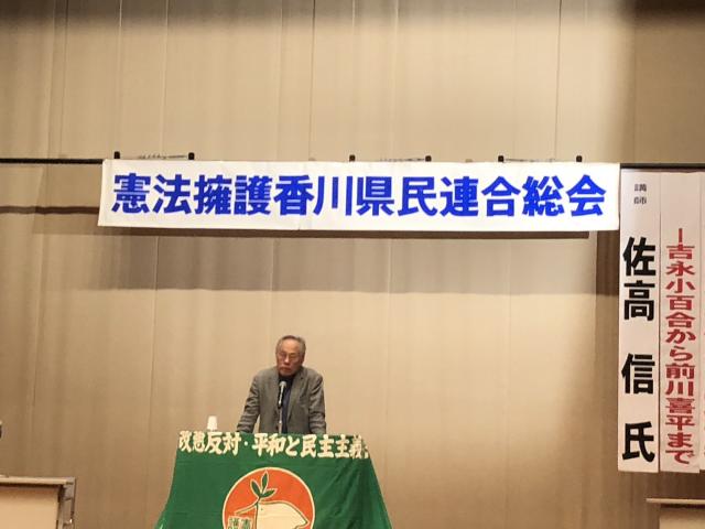 2月11日(月)護憲香川総会および記念講演会(佐高 信) 香川県社会福祉総合センターにおいて、午前9時半より護憲総会が開催されました。2018年度活動報告、2019年度活動方針が採択され、総会を終えた後、憲法講座の3回めとして、評論家である佐高信氏による記念講演会が開催されました。「護憲派の逆襲 ― 吉永小百合から前川喜平まで」という演題で安倍政権を鋭く批判された内容でした。その後、三越前までデモ行進を行いました。