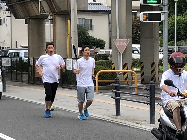 8月6日(火),7日(水)第32回反核・平和の火リレー 第32回目を迎える反核・平和の火リレーが行われました。香川県平和労組会議に加盟する労働組合の青年層が中心に、暑さに負けず反核・平和を願ってリレーをつないでいきました。 ・8月6日(火) 西讃コース 観音寺市役所〜琴平町役場 小豆コース 小豆島町役場〜土庄町役場 ・8月7日(水) 中讃コース まんのう町役場〜県庁前 東讃コース 東かがわ市役所〜県庁前 日教組香川からは嶋村委員長が普段からのランニング経験を活かし、猛暑の中、中讃コースの終盤に栗林公園から亀阜公園まで走りました。
