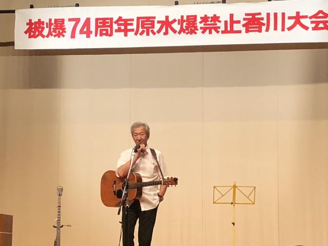 9月14日(土)原水禁香川総会・記念講演会 香川県社会福祉総合センターにおいて、午後1時半から原水禁香川総会が開催されました。その後、記念講演としてシンガーソングライターの古川 豪さんのミニコンサートが約1時間半行われ、トークも交えながら、会場いっぱいに歌声が響きました。