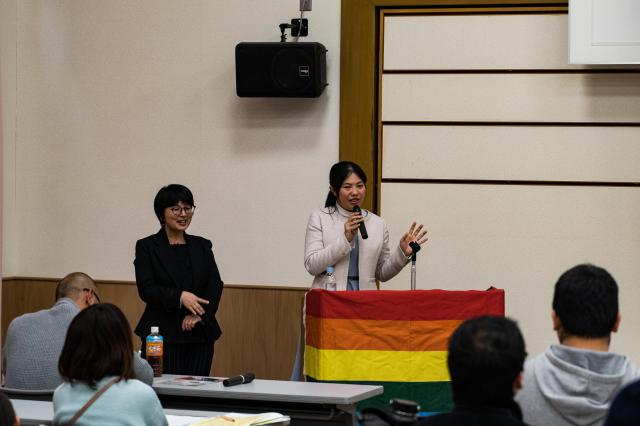 第2部は井上鈴佳さんによる【講演】「あなたの身近にもいるLGBT〜男女やLGBTだけじゃない!性のあり方は十人十色〜」という演題で、ご自身の体験をふまえて現在に至るまでの報告やLGBTについて詳しく話され、特に「アウティングは絶対にしない」「アライ(味方)になってくれませんか」という思いを優しい口調ながら強く語られました。