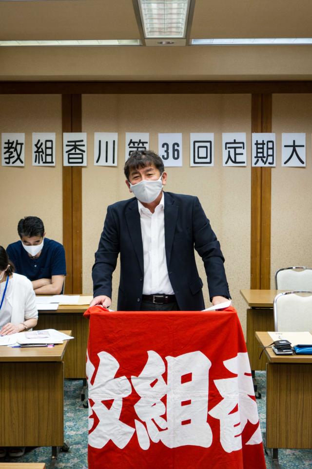 6月20日(土)日教組香川教職員組合第36回定期大会 新型コロナウィルス対策のため、今年度は来賓の皆様をお呼びしての開会行事は行わず、縮小して開催しました。 長きにわたる休校により、多くの課題が新に浮かび上がっています。コロナ対策をはじめ、働き方改革・勤務条件改善、教職員の賃金水準の改善、35人学級などの教育条件整備、平和・人権・環境・民主主義を守る運動などのとりくみを中心とした2020年度運動方針などについて話し合いました。詳細は機関紙「日教組香川」に掲載します。
