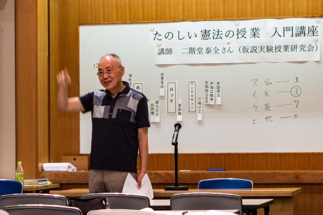 9月5日(土)2020年度日教組香川教育研究集会 新型コロナウィルスの影響でなかなか集会が開けない状況ですが、9月5日(土)午前10時からサンメッセ香川2F特別会議室において、感染回避の対策をした上で開催できました。詳細は日教組香川新聞10月号に掲載します。 第一部(10時〜12時)教育実践リポート発表 第二部(13時〜16時30分)「たのしい憲法の授業 入門講座」 講師:二階堂泰全さん (仮説実験授業研究会)