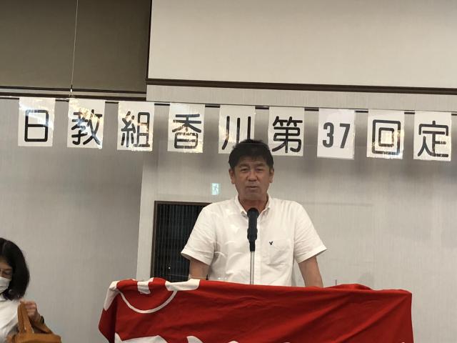 6月19日(土)日教組香川教職員組合第37回定期大会 新型コロナウィルスの感染拡大により、今年度も昨年度同様に来賓の皆様をお呼びしての開会行事は行わず、縮小して開催しました。 教育現場からは様々な課題が寄せられ、コロナ対策をはじめ、働き方改革・勤務条件改善、教職員の賃金水準の改善、35人学級などの教育条件整備、平和・人権・環境・民主主義を守る運動などのとりくみを中心とした2021年度運動方針などについて話し合いました。詳細は日教組香川新聞7月号に掲載します。